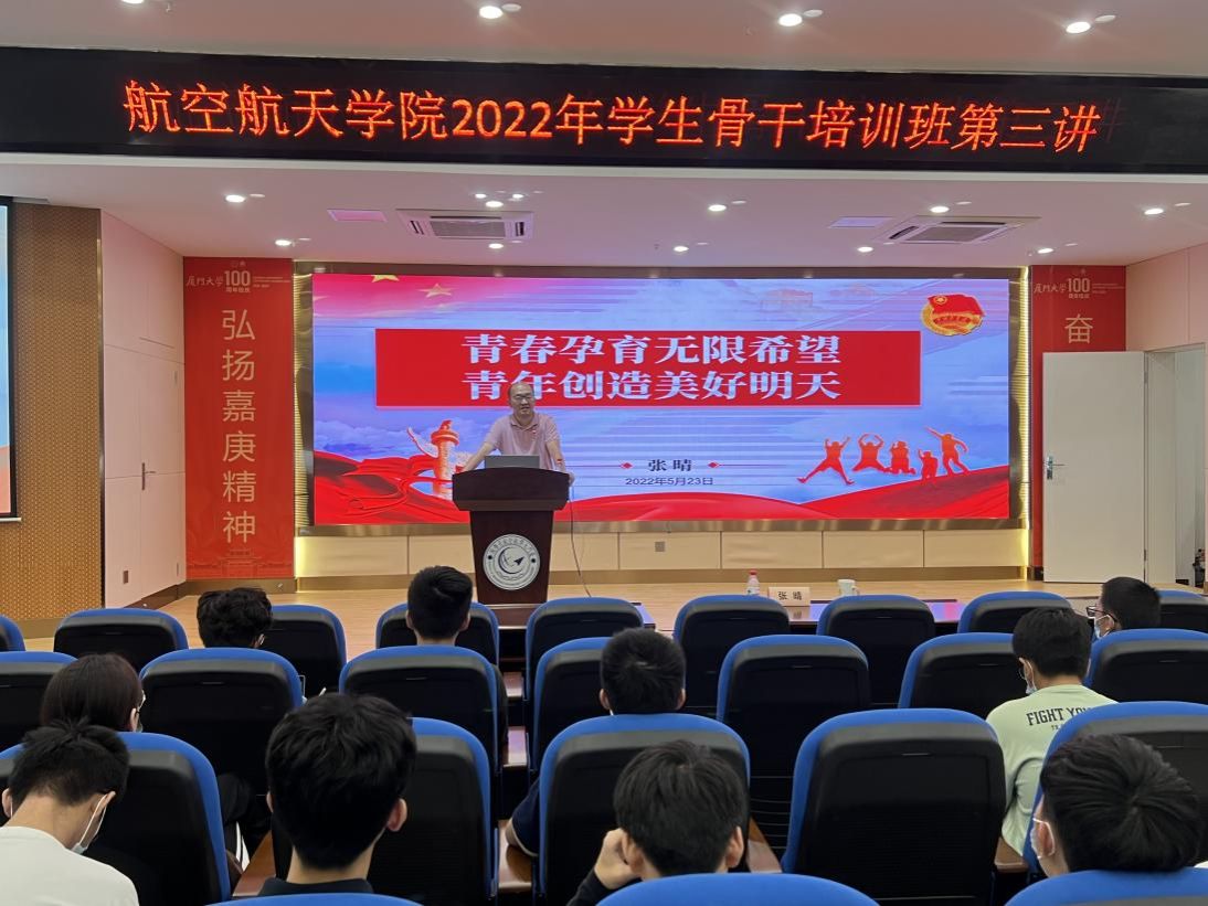 5月9日下午,航空航天学院2022年学生组织骨干培训班开班式在学院报告厅举行。共青团福建省委宣传部副部长周伟亮、学院党委书记王康平、翔安校区办公室主任兼学校办公室副主任薛志平、学生工作部(处)副部(处)长许美霞、翔安校区团工委书记兼校团委副书记林蕊出席活动,活动由学院党委副书记张晴主持。