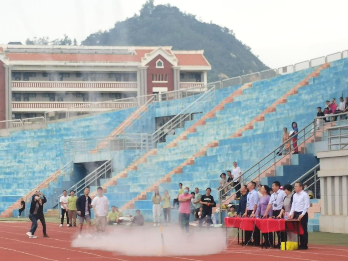 由六位嘉宾共同进行火箭点火发射仪式,随着火箭升空而起,活动气氛达到顶点。希望更多的同学在收获航空航天知识的过程中探索兴趣、拓宽视野,在动手实践的过程中体验快乐、收获知识。