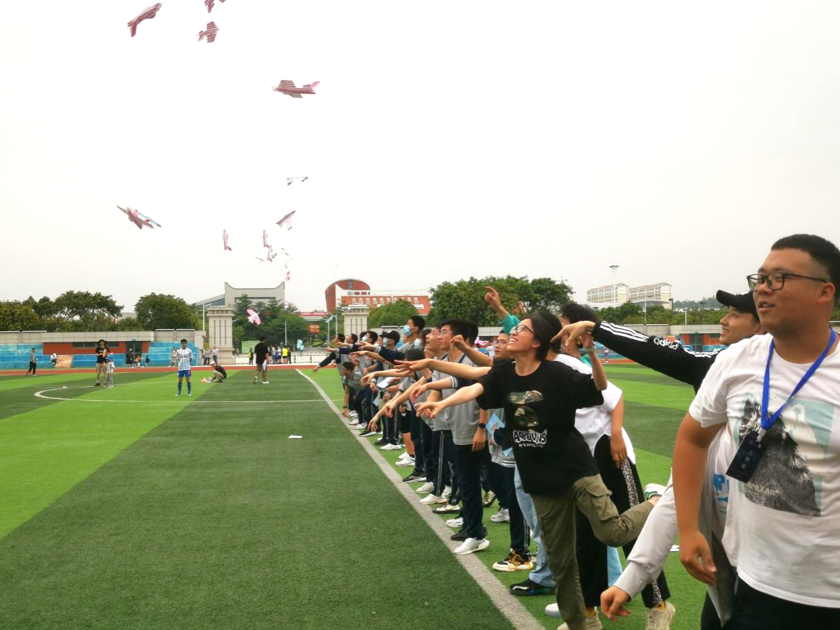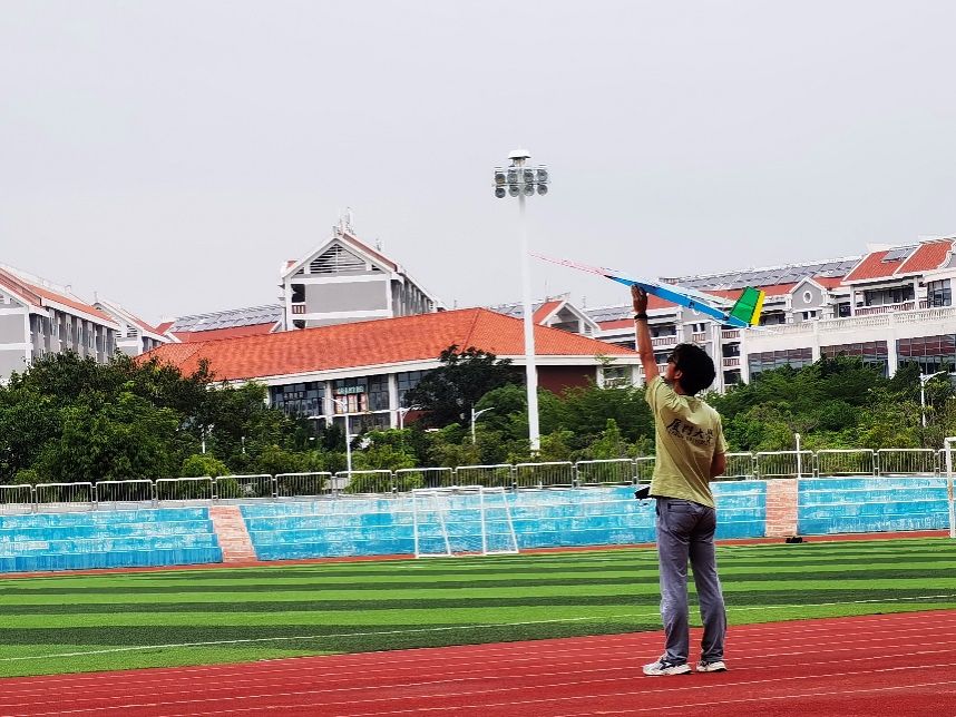 开幕式尾声设置了互动项目近距离体验空天魅力,在场的同学们及厦门一中同学们在航模队员指导下组装好手中的航模,移步操场在起飞线前放飞纸质飞机。同学们积极参与、奋勇争先,相信我们的未来也将如振翅翱翔的无人机一般,越飞越高、越飞越远。
