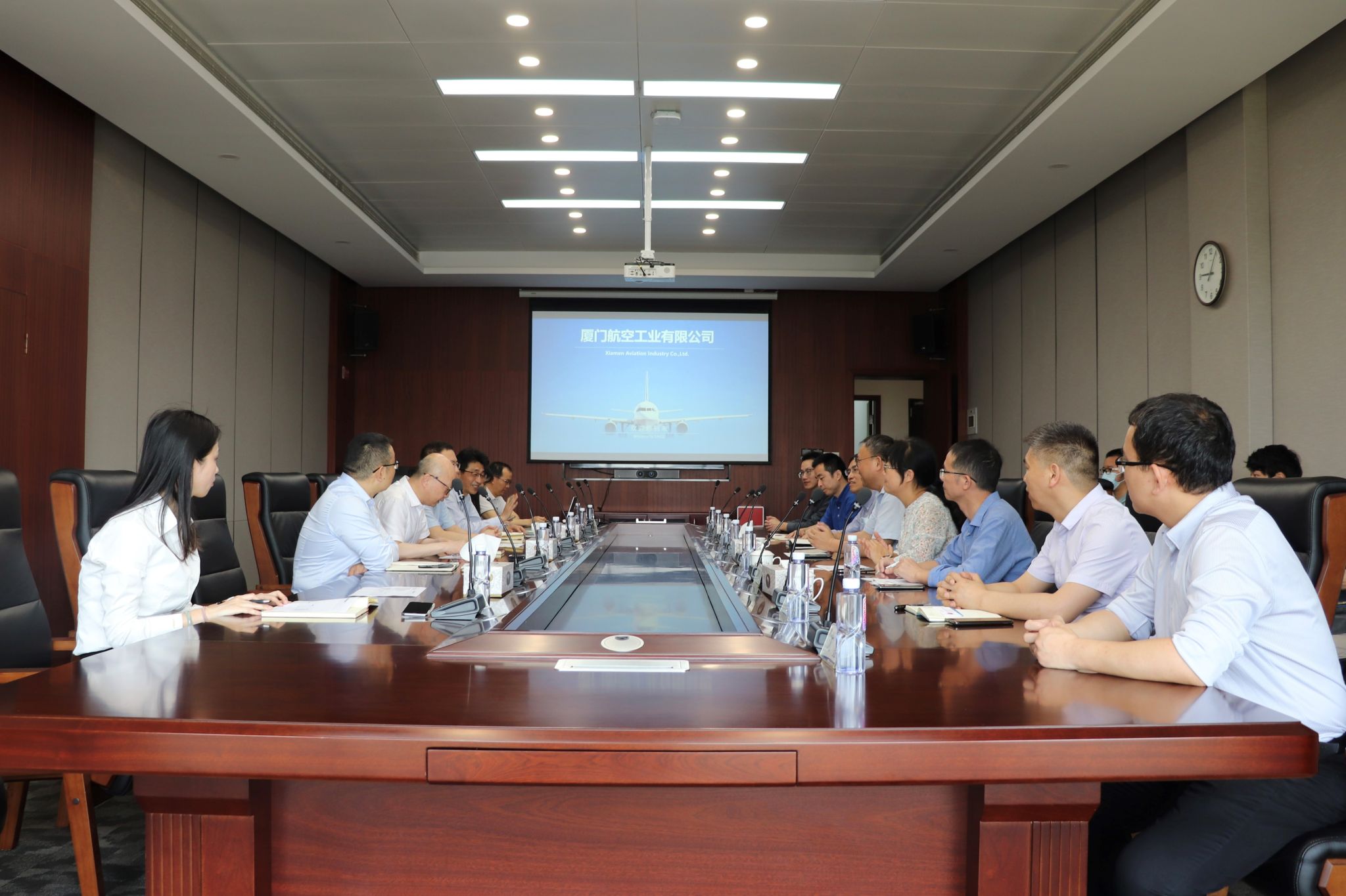 为深入贯彻党中央、国务院关于做好高校毕业生就业工作的决策部署,积极推动我院毕业生更充分、更高质量就业,进一步落实就业工作“一把手”工程,进一步深化校企产学研合作,5月20日上午,航空航天学院党委书记王康平、党委副书记林蔚、国家高层次人才罗华耿教授、仪器与电气系主任王奕首教授、飞行器系副主任王晓光副教授等师生代表一行赴厦门航空工业、厦门太古飞机开展调研。厦门航空工业有限公司总经理蔡春生,1990级院友、党委副书记、纪委书记林志清,2001级院友、常务副总经理李正林,厦门太古飞机董事安瑞捷等接待了调研团。双方就校企合作、人才培养和学生就业等方面进行座谈交流。