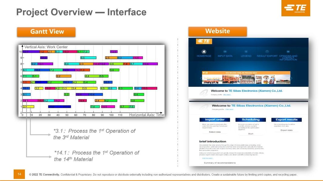 参赛团队针对产业供应链需求、企业生产计划优化问题提出解决方案,设计出一款用于TE厦门工厂生产计划排程的AI系统。队伍围绕TE厦门工厂生产过程中小批量多品种订单量大制成工序复杂、料号繁多,导致生产计划制定繁琐复杂,目前有先进的SAP系统,但仍需人工做大量数据整合和判断实现,耗时长,精细度、科学性、可视化不高,叠加疫情以来激增订单,供应链时效性受到严重影响等现实问题。