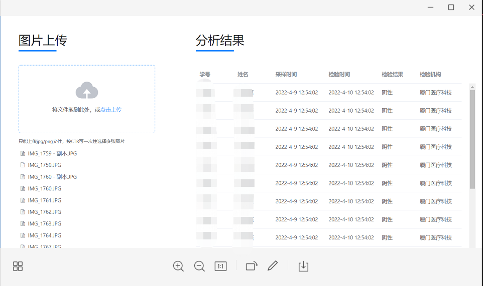 “核识宝”是核酸检测报告识别工具,可以批量检测核酸证明,并将结果存储到本地。“核识宝”下载后无需网络小程序即可自动轻松识别排查异常核酸检测报告,有效提高了核酸检测报告审核效率。
