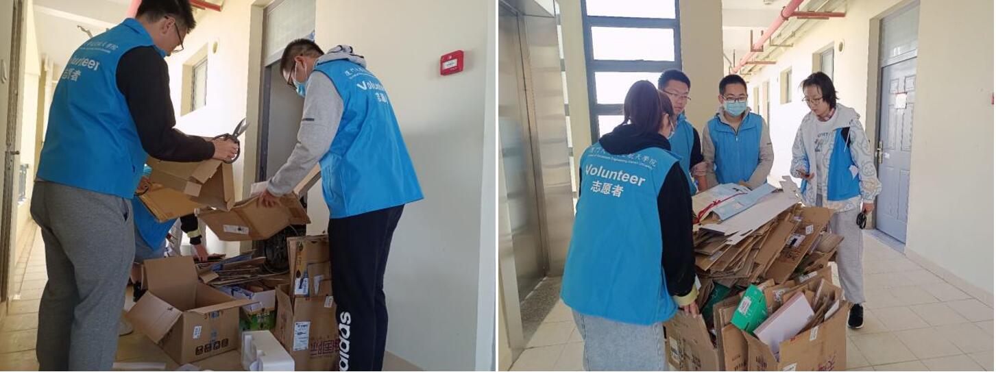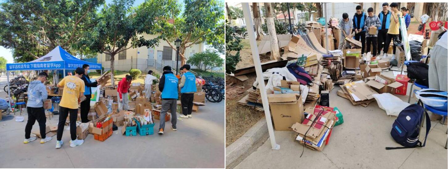 终于,回收站的工作人员将纸箱全部回收,一天的活动圆满结束。通过此次活动,学院青协真正将劳动教育和垃圾分类教育走进宿舍、走进园区,不仅为同学们提供了便利,改善了宿舍环境,也提升了志愿者的劳动能力。