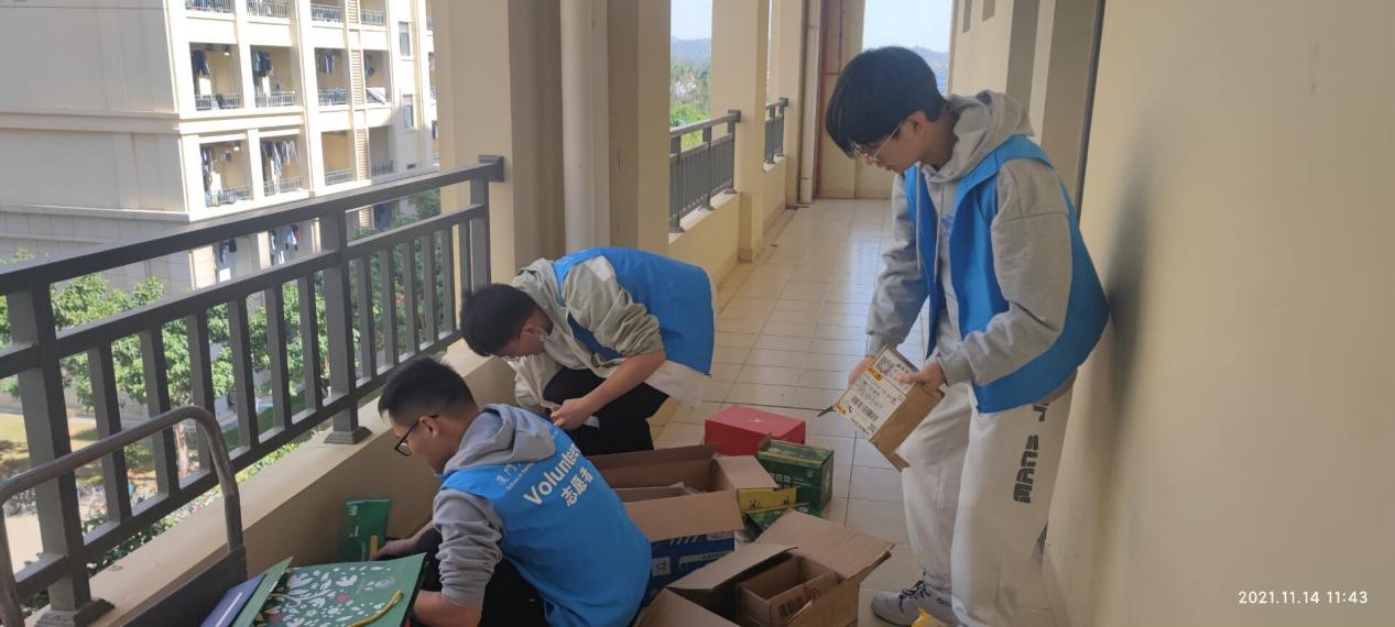 自11月14日开展以来,志愿者们跟随着各自的领班上门收纸箱。第一次收纸箱的志愿者们在整理时会感到手足无措,但随着收集次数的增多,大家都更加得心应手。剪纸箱、整理、收集,尽管很累,但大家没有放弃。即便志愿服务时间已到,很多志愿者仍没有签退,继续收集纸箱。本来只有一个半小时的活动,持续三个半小时。大家一遍遍将收集到的纸箱运至宿舍楼下,虽然疲惫,但收获满满。