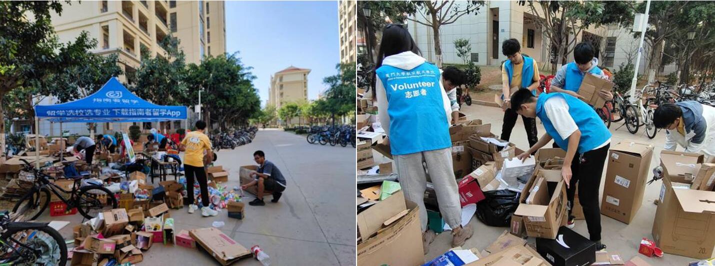 又是一年双十一,一年狂欢购物节,同学们早已迫不及待的下单,购买所需物品。伴随着商品一同到来的还有大量各式各样的纸箱堆积,或者没能正确做好垃圾分类随意丢弃,严重影响宿舍和园区的环境卫生。面对这一问题,航空航天学院青年志愿者行动指导中心在学院团委指导下,以“学生需求”为导向,结合学院“劳动教育”专项工作和“垃圾分类”教育,推出“种厦纸梦”志愿服务品牌活动,旨在由志愿者主动上门指导同学们对废弃不用的纸箱、草稿纸、塑料瓶等进行分类处理,并协助搬运至回收站,同时还为积极参与的同学们积分,凭借积分兑换精美礼品。