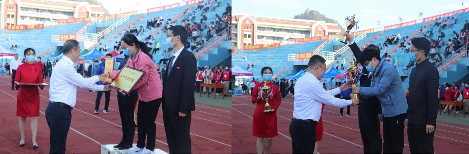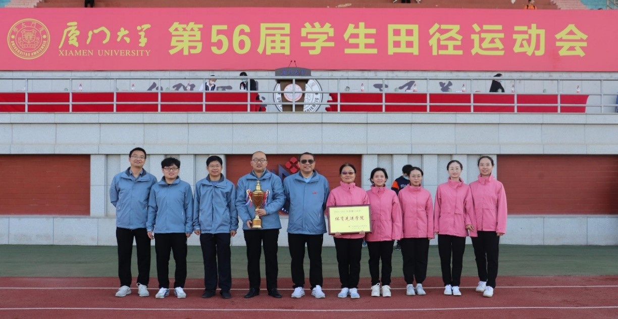 随后的颁奖仪式上,我院获2020~2021学年厦门大学全年体育总竞赛冠军,2020~2021年度体育工作先进学院。校长助理陈光、方颖为航空航天学院颁奖。