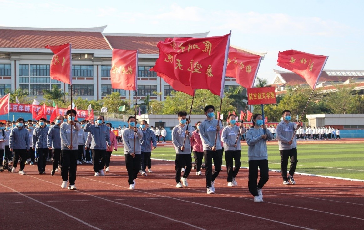 2021年11月12日上午,厦门大学第56届学生运动会翔安校区分赛场在万众期待中火热开赛。校长助理陈光、方颖以及学校体育工作领导小组成员、机关各部门负责人、翔安校区各学院及研究院党政领导、师生代表等出席了开幕式,体育教学部主任陈志伟担任开幕式主持。航空航天学院党委书记王康平,副院长卿新林,党委副书记张晴、林蔚参加学院队列式。