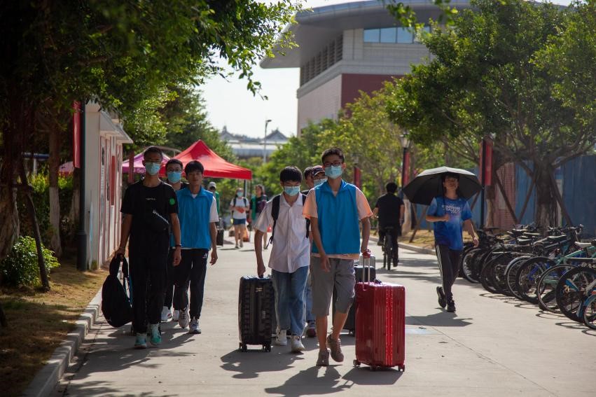 2021年9月9日,阳光明媚的厦园迎来了朝气蓬勃的2021级新生。初见厦园的他们在穿着红蓝马甲的志愿者引导下,井然有序地到达宿舍园区并完成注册工作。因疫情原因,新生家长不能入校,但志愿者的口罩下的笑容,却是如家人般的温暖。