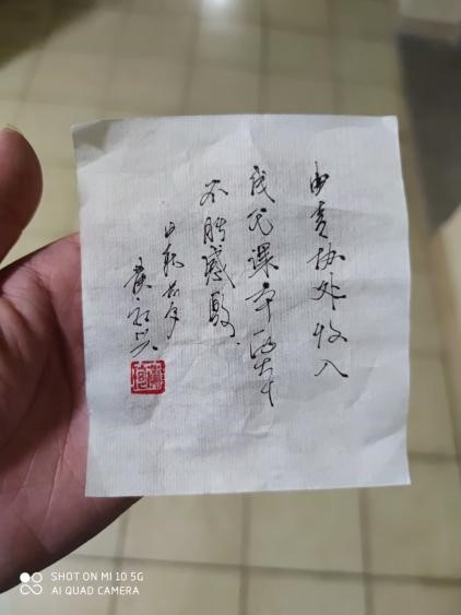 (图为一位新生写的感谢函)
