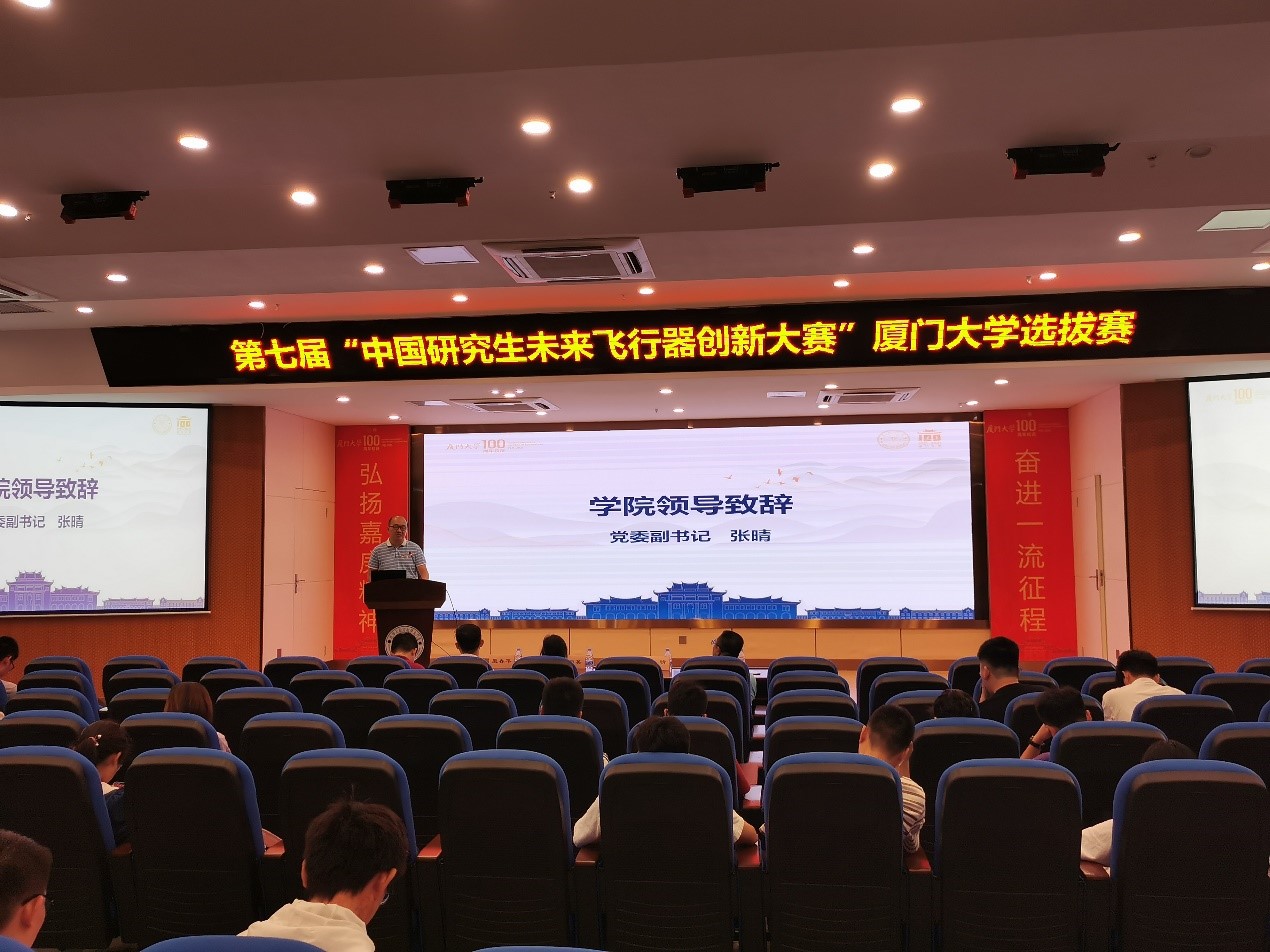 5月17日中午12点30,“第七届中国研究生未来飞行器创新大赛暨厦门大学选拔赛”开幕式在厦门大学航空航天学院大报告厅顺利举办。厦门大学研究生院培养与管理办公室苏月英老师,厦门大学航空航天学院党委副书记张晴老师,厦门大学航空航天学院飞行器系副主任/评审专家孙洪飞教授,厦门大学航空航天学院团委副书记倪建超老师以及厦门大学航空航天学院殷春平老师出席了本次开幕式。