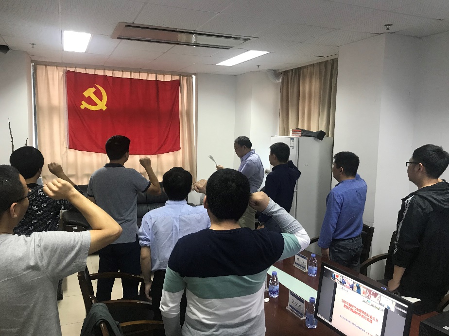 活动在庄严的宣誓仪式中开始,王康平带领与会党员面向党旗重温入党誓词。
