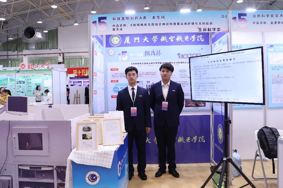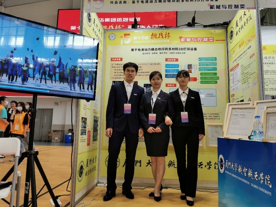 经过紧张激烈的现场答辩和专家评审,厦门大学共获特等奖3项、一等奖7项,并获红色专项特等奖2项、一等奖3项,位居各省之首。其中,航空航天学院肖望强教授指导的《城市轨道交通粒子阻尼减振降噪装置》获得特等奖,孙道恒教授指导的《基于电液动力耦合喷印的多材料3D打印设备》和方正教授指导的《X射线吸收光谱结合神经网络算法的肝硬化无创检测新方法》获得一等奖。学院优异成绩的取得,得益于指导教师的严谨治学和参赛团队的创新精神、实践能力,也离不开创新创业工作小组成员张晴、刘万山、王坤、李春梅、翁伟、华世欣等师生的辛勤付出。备赛期间,工作小组成员与团队师生一道进行了细致认真的作品打磨与提升,组织了近十轮模拟答辩,为最终取得佳绩奠定了坚实基础。我院参赛师生执着的竞技精神、良好的参赛状态、昂扬的精神风貌,得到了各评审专家、参赛师生、观摩代表等的广泛关注和普遍好评。