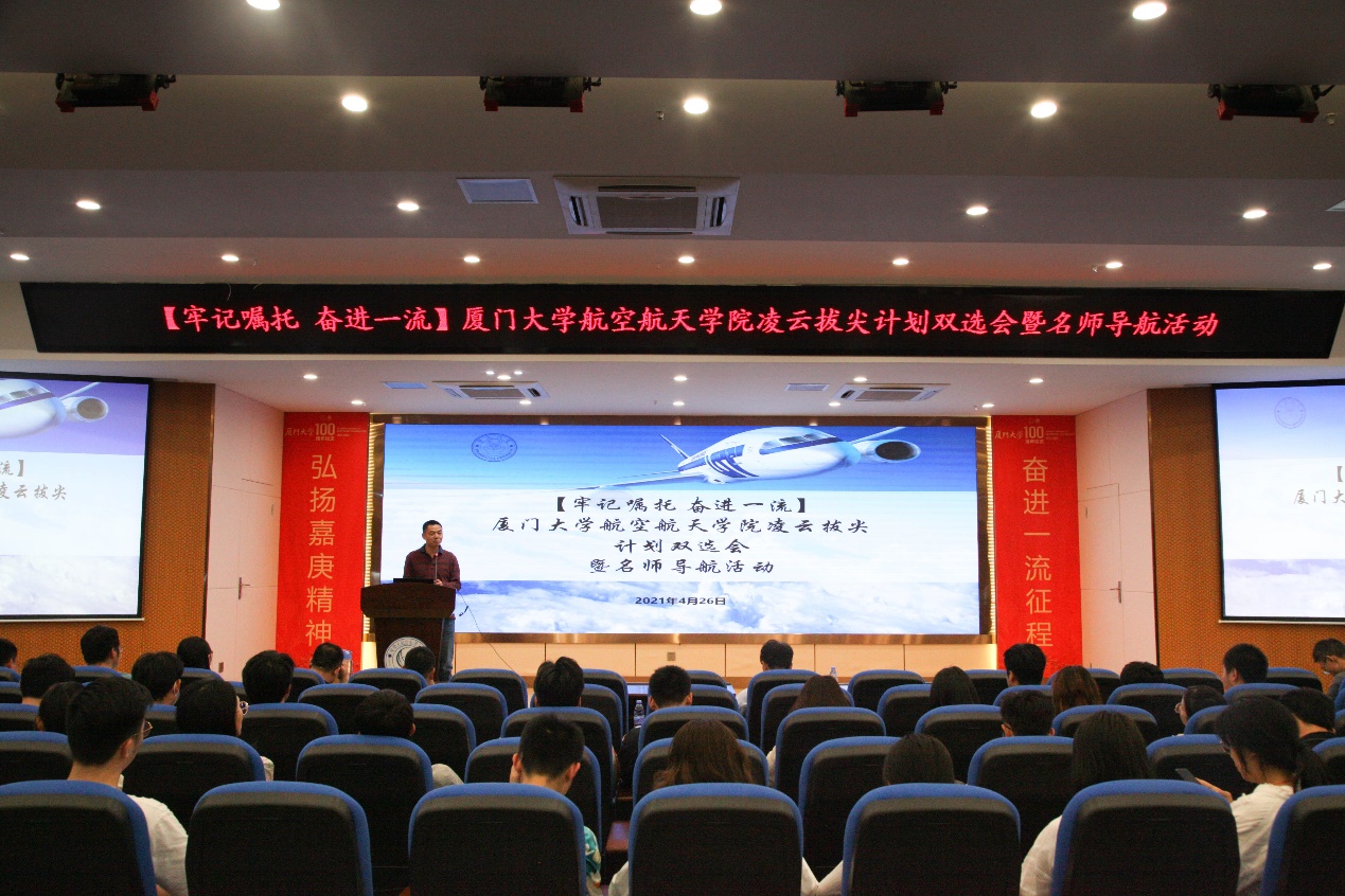 为深入贯彻习近平总书记致厦门大学建校100周年的贺信和在清华大学考察时的重要讲话精神,切实落实立德树人根本任务,为建设世界一流大学积极培育一流人才,2021年4月26日,航空航天学院举办“凌云拔尖计划”双选会暨“名师导航”活动,航空航天学院副院长兰维瑶主持活动。