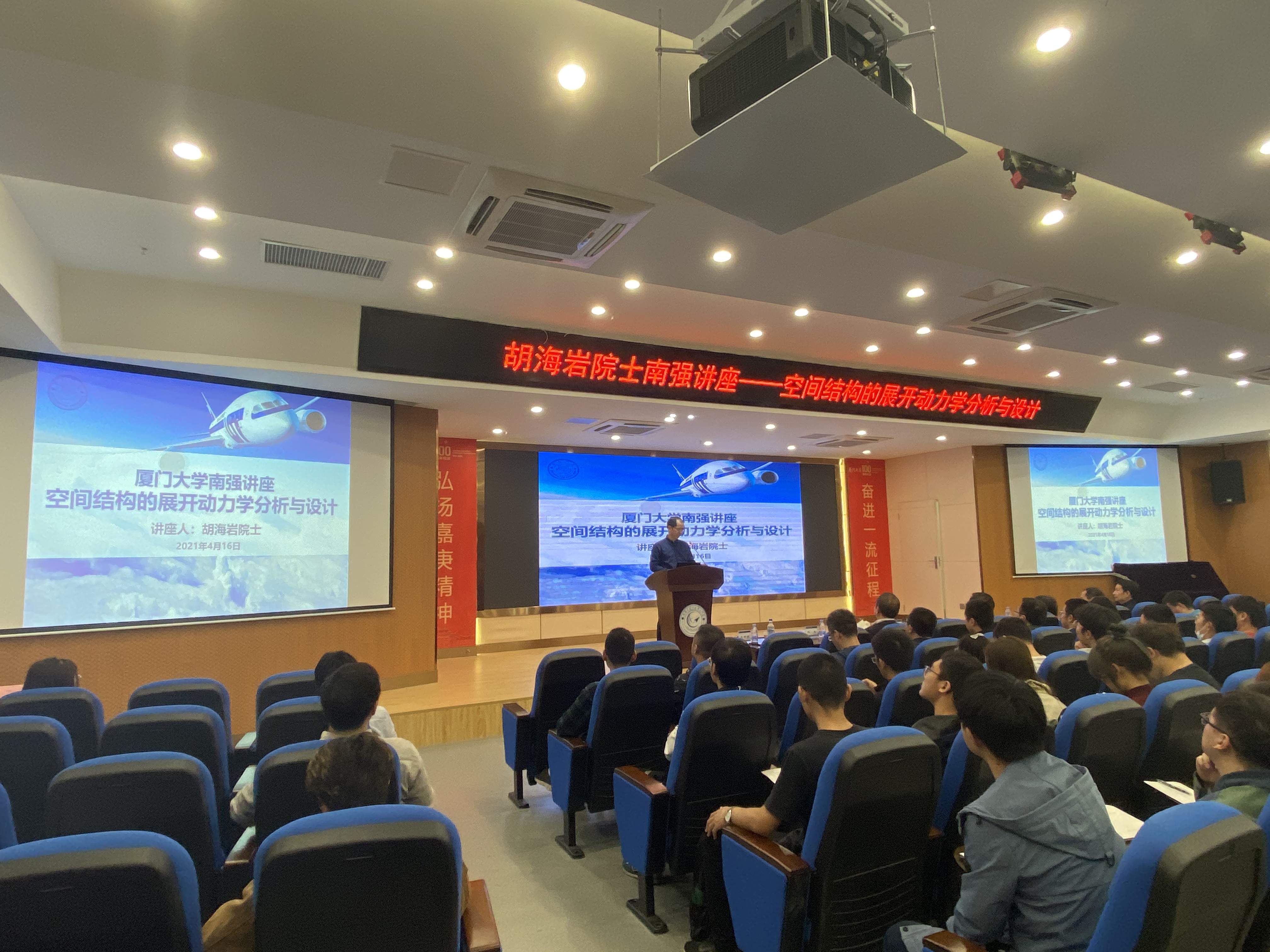 4月16日,航空航天学院邀请中国科学院胡海岩院士进行了一场“空间结构的展开动力学分析与设计”的精彩南强学术讲座,活动为航空航天学院百年校庆系列活动之一。校长助理陈光出席活动,学院党委副书记、常务副院长尤延铖主持活动。