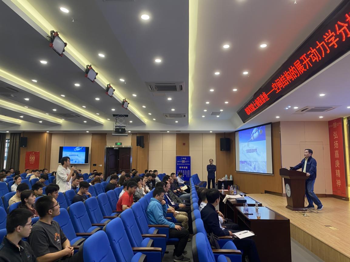 在互动交流环节,学生们提出了针对本次讲座内容具有探讨意义的问题,由点及面,胡海岩院士进一步分享他的研究经验,给出指导意见。最后,胡海岩院士勉励广大师生,他现今展示的研究成果,很大部分都是参与的研究生钻研探索的工作贡献,研究生是重要的科研力量,大有可为、潜力无限,对大家寄予厚望。讲座在雷鸣般的掌声中圆满结束。