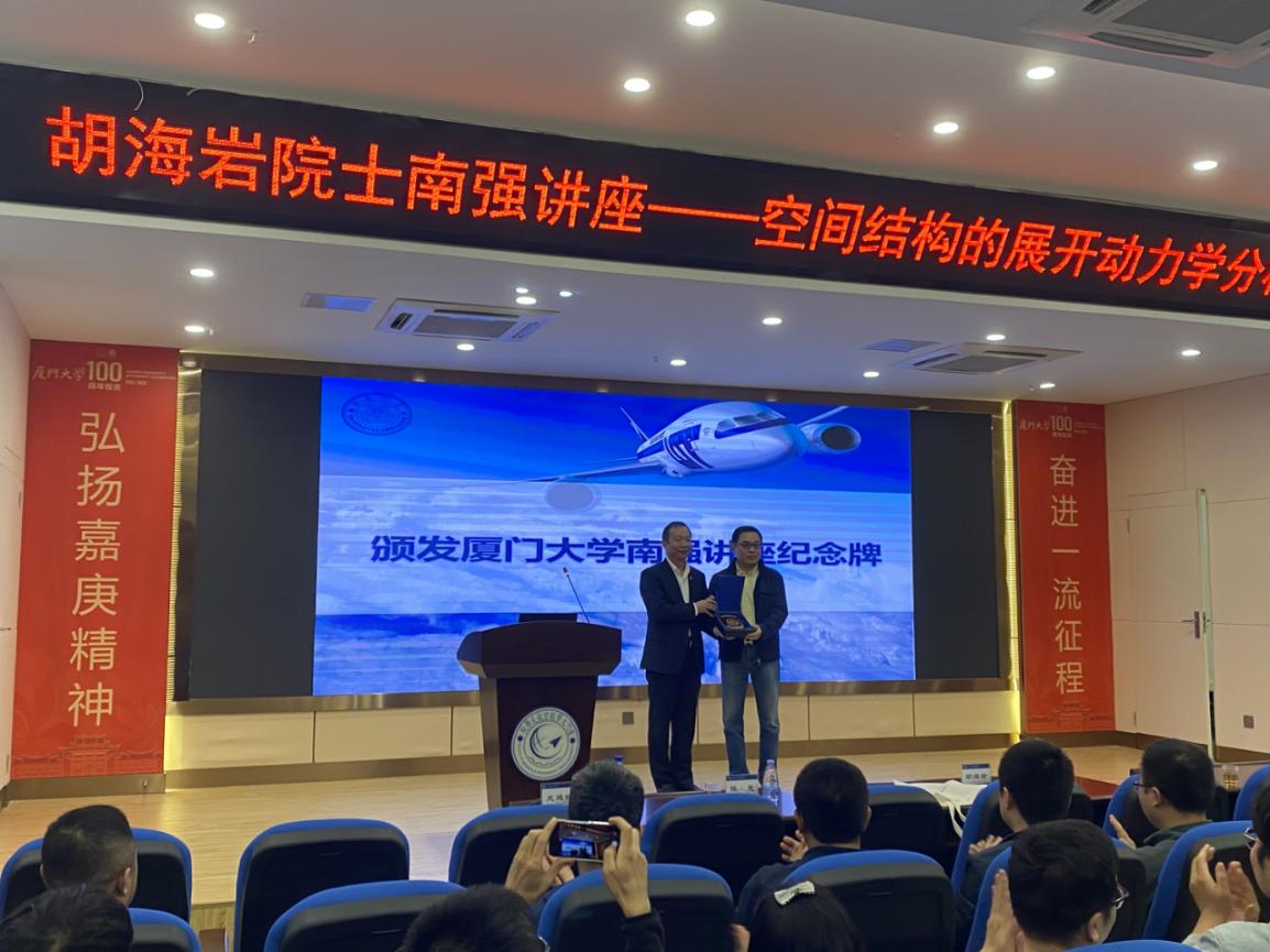 首先,陈光对胡海岩院士的到来表示热烈欢迎,并颁发厦门大学南强讲座纪念奖牌。