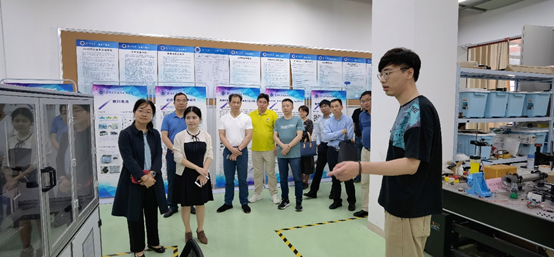 林玉萍一行首先在学院一楼参观3D打印及先进制造、传感器技术、控制与导航等实验室;之后企业家们与机械制造方面的专业教师面对面就相关技术问题进行了深入地交流。