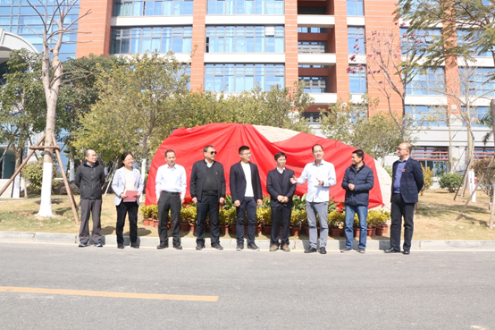 最后,王康平、尤延铖为李佳佳、薛文东颁发捐赠证书,并与其他院领导一道为“院名石”揭幕。