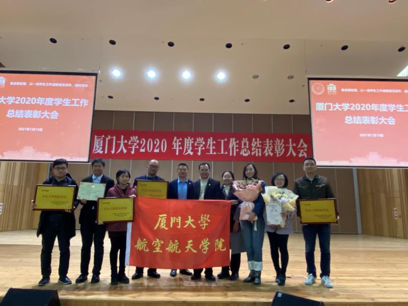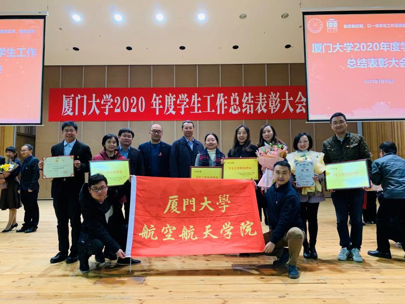 在2020年度校学生工作考核中,航空航天学院勇夺桂冠,创造历史最好成绩:以全校总积分第一的成绩喜获“学生工作先进单位”(连续第三年获评),并分别以全校单项积分第一的成绩获“日常思想政治教育”(连续第二年获评)、“学生心理健康教育”、“学生学业学术科技创新创业”共3项“学生工作特色单位”(获奖数全校第一)。与此同时,院团委副书记、辅导员倪建超荣获2020年度“优秀辅导员”称号。