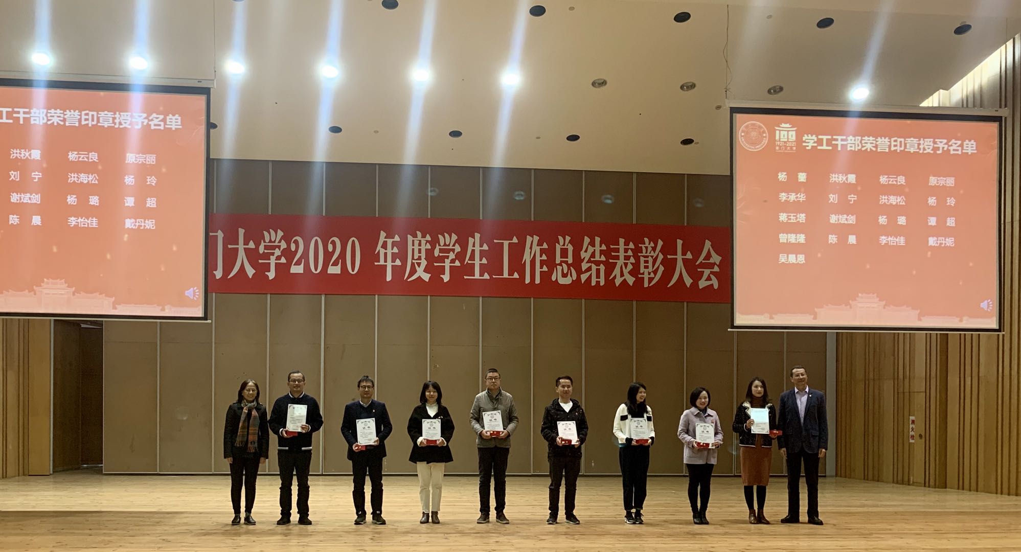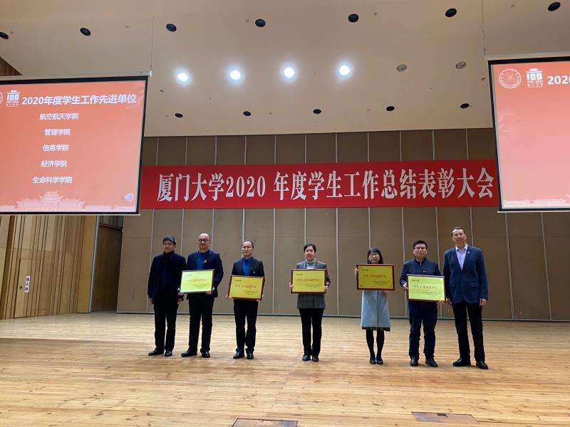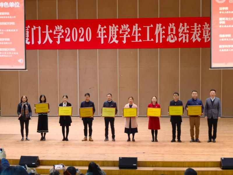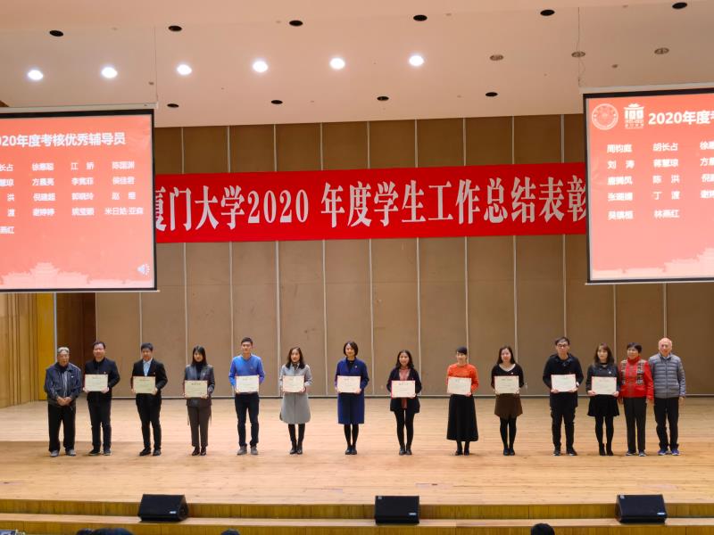 2021年1月10日,厦门大学2020年度学生工作总结表彰大会在科艺中心音乐厅召开,校党委副书记赖虹凯出席会议并讲话,校关工委主任陈力文,校党委常委、宣传部部长、教师工作部部长徐进功,校党委常委、组织部部长、统战部部长孙理等出席会议。大会总结我校2020年度学生工作的成绩和经验,并对2020年度学生工作先进单位、特色单位和优秀辅导员进行表彰。航空航天学院党委副书记张晴、林蔚,全体辅导员参加会议。