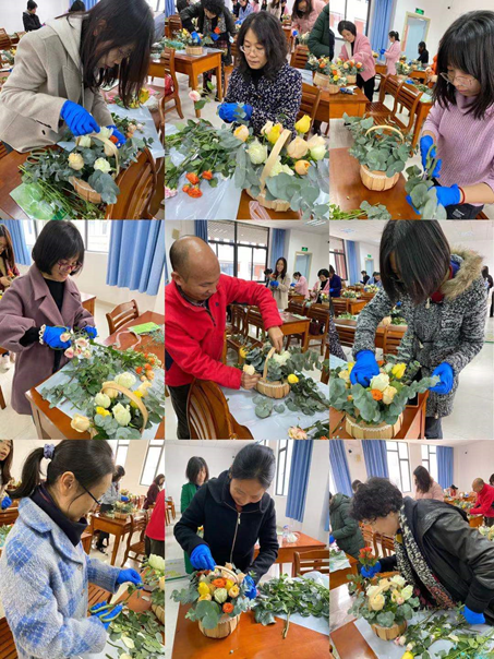 本次活动邀请了专业的插花工艺师为大家讲授插花艺术及技巧,并现场进行实物操作。在现场实物操作中,老师们在工艺师的帮助下着手制作属于自己的插花作品,大家相互交流,细心品味,感受到花艺的魅力,享受到了花艺带来的愉悦。