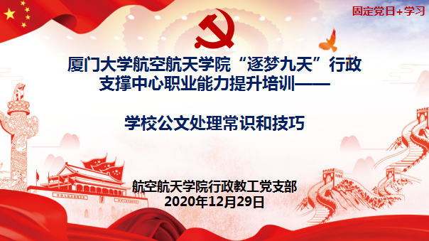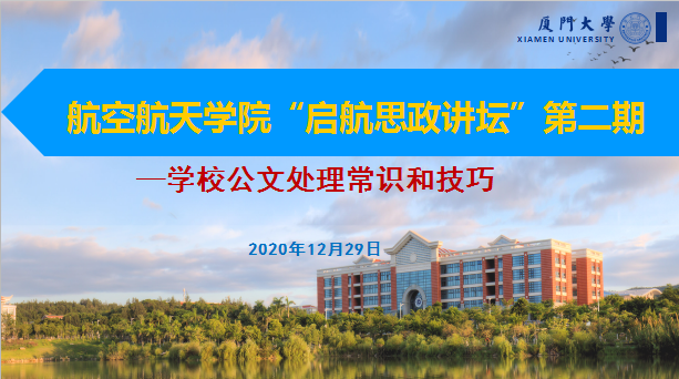 2020年12月29日,航空航天学院行政教工党支部“逐梦九天”职业能力提升培训暨第二期“启航思政讲坛”在学院501会议室顺利开展。培训会由院党委副书记林蔚主持,航空航天学院行政教工党支部成员参加。