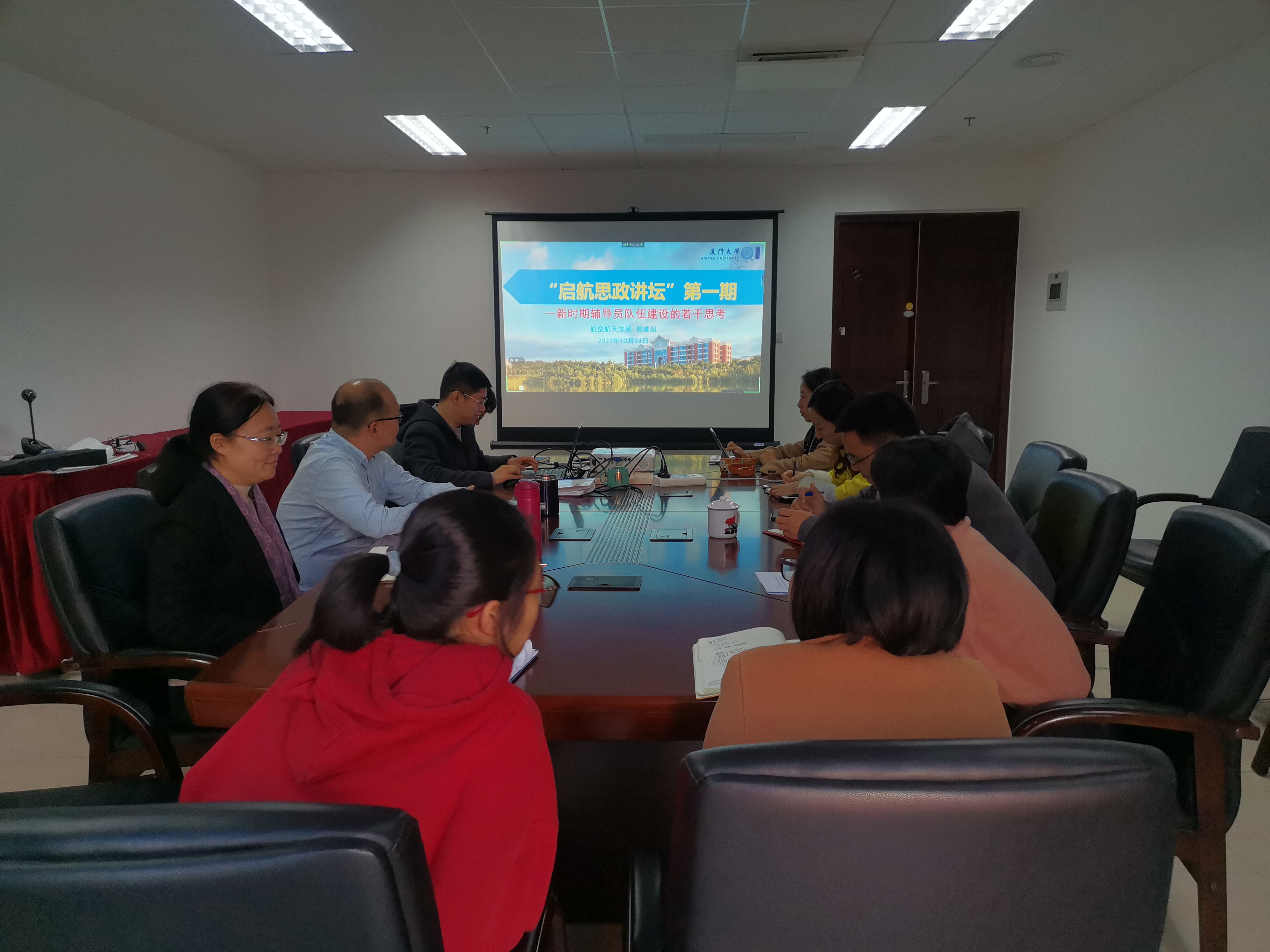 为深入开展思想政治教育工作研究、切实加强辅导员队伍建设,营造共同探索、共享成果、互帮互学的工作氛围,航空航天学院于2020年12月24日设计实施“启航思政讲坛”,学院党委副书记张晴、林蔚,全体辅导员、党务秘书、组织员参加首期讲坛。