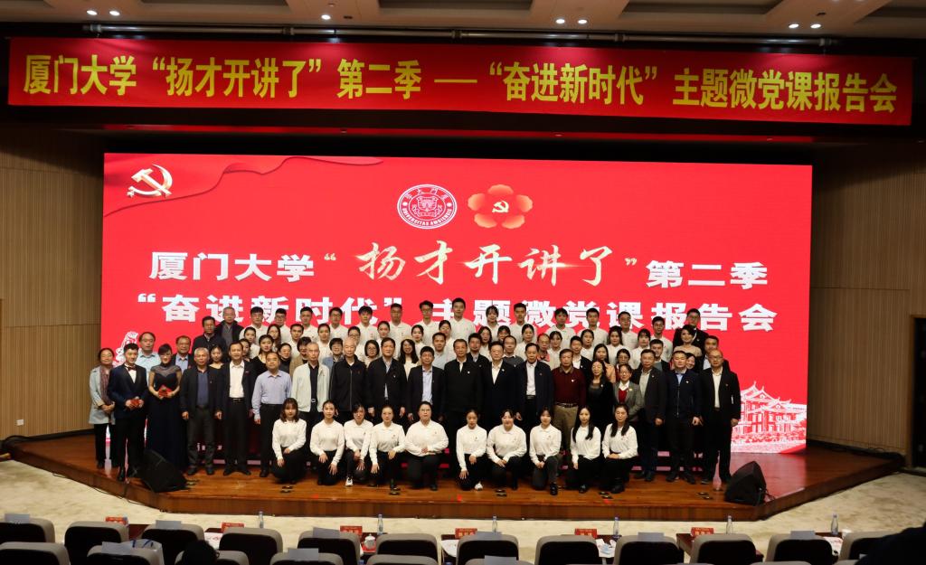 12月5日下午,厦门大学“扬才开讲了”第二季——“奋进新时代”主题微党课报告会在翔安校区一号报告厅举行。校党委副书记赖虹凯,校党委常委、宣传部部长、教师工作部部长徐进功,校党委常委、组织部部长、统战部部长孙理出席。