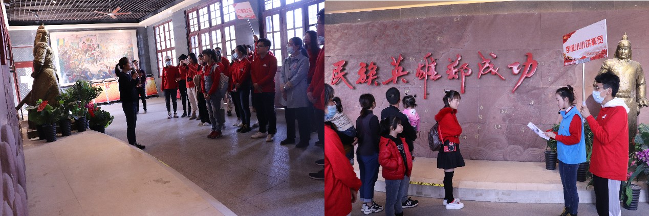 习近平总书记指出,崇尚英雄才会产生英雄,争做英雄才能英雄辈出。英雄是中华民族的脊梁,是时代的标杆,实践队的第二站是参观“郑成功纪念馆”,在此追寻民族英雄的足迹。实践队员们跟随馆区讲解员步入展厅,参观陈列,如临其境,如闻其声,仿佛读到的是一幅幅鲜活动人的恢弘画卷。队员们在参观学习中铭记英雄功勋,沐浴英雄荣光,传承爱国精神。实践队员们还回顾了在党和新中国的历史上为民族发展、社会进步做出巨大贡献的英雄事迹,激发了强烈的爱国之情,更加坚定投身祖国现代化建设的信念。参观馆区后,实践队员们向讲解员请教,学习史料知识和讲解技巧,并在郑成功的威严雕像前自发为游客热情讲解,做英雄事迹的传播者。