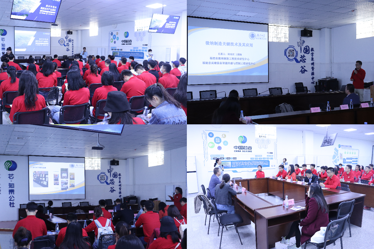 参观后,实践团队与芯谷园区代表举行了“厦门大学航空航天学院-福建泉州芯谷南安园区科技工作交流分享会”。南安分园区管委会主任蔡映辉介绍了泉州半导体高新技术产业园区的发展进程及未来趋势,何功汉针对芯片领域相关项目,介绍了学校在微纳制造方面的研究进展与突破,学生代表介绍了学院人才培养以及指导学生开展创新创业实践的情况。实践队员们结合学科特点及需求进行了自由探讨,探索跨专业跨学科合作创新点。