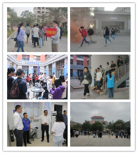 在理论教育基础上,学院安排了不同场景的消防疏散演习,分别于11月9日、11月13日组织学生在博学宿舍园区、学院实验室的消防疏散演习,真实模拟火情场景。警报声响起意味演练的开始,在宿舍园区和学院大楼的逃生路线两侧有专门负责引导的同学和老师,引导同学通过附近的逃生出口快速有序地到达疏散点,同时提醒同学掩住口鼻,以防烟气呛鼻。保卫处和学院政工干部在监控室实时关注师生们的逃生路线和方法,确认消防逃生的可行性和路线的合理性,以确保在险情发生时最大程度保障师生安全。两次演练让师生们将逃生理论知识运用到真实场景中,有效增强了师生自救逃生能力。