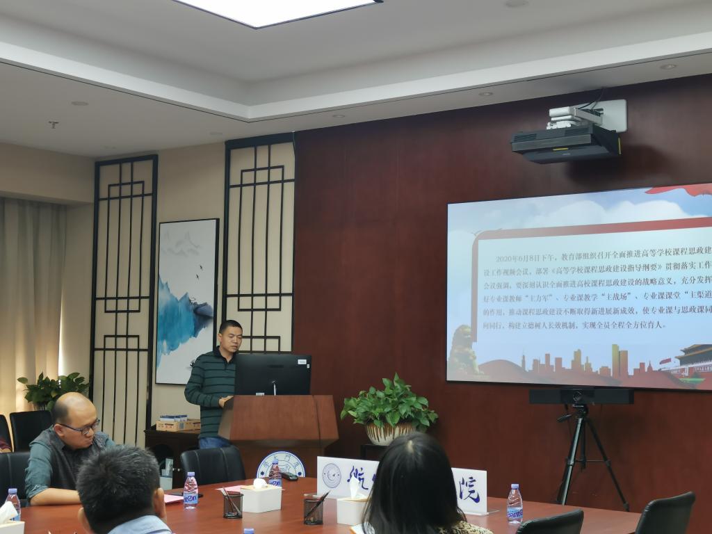 兰维瑶首先向与会人员解读《高等学校课程思政建设指导纲要》,他阐述了“纲要”出台的背景和重要意义,全面推进课程思政建设的工作目标、主要思路,“纲要”在构建课程体系方面提出的要求,强调了学院应立足“注重强化学生工程伦理教育,培养学生精益求精的大国工匠精神,激发学生科技报国的家国情怀和使命担当”、“守好一段渠、种好责任田,推动各类课程与思政课程同向同行”的教育目标,围绕政治认同、家国情怀、文化修养、法治意识、道德修养等重点内容优化课程思政内容供给,确保专业课课程思政“见效”。