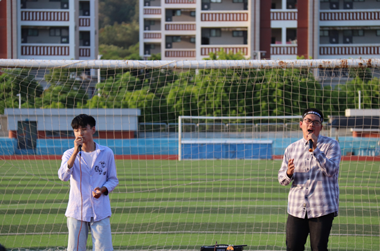 在热烈的掌声中,由20级的同学洪天宇、顾圣堂带来歌曲《阴天快乐》。真可谓“江山代有人才出”,两位同学嘹亮的歌声洋溢在训练场上,气氛渐渐高涨。紧接着,由20级同学精心编排的不同风格的歌曲串烧与爵士舞将全场气氛点燃。与此同时,一杯杯清凉的奶茶也送达同学们手中。精彩的节目伴随着香甜的奶茶,顿时暖到心里。