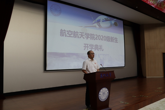 航空航天学院党委书记王康平为新生致辞。王书记追溯厦大历史,为新生讲述航院发展历程,早在20世纪40年代,厦门大学就创办了机电工程系和航空工程系,为当时中国在机械、航空方面的发展做出了突出贡献,之后由于地理位置的原因,航空系等工科学科转移到清华。20世纪90年代,由于需求,厦门大学复办工科,其中包括机电工程系、航空系和自动化系,所以虽然学院成立时间不长,但其学科历史悠久。王书记也提到,2020年注定是不平凡的一年,新冠肺炎冲击着世界各地,但中国人民万众一心,经受住了这次考验,无数人用实际行动诠释了责任与担当,我院主动对接国家发展战略,按照“大团队、大项目、大奉献”的思路,不断加强创新平台和团队建设,而2020级新同学们的到来为航院注入了新鲜血液,他相信,新同学们将来能为学院的发展添砖加瓦。最后,王书记表达了对新生的美好祝愿,希望新生在大学四年里学会“大德、大爱、大学问”,铭记“自强不息,止于至善”的校训,发扬厦大四种精神,为国家航空航天事业的发展贡献力量!