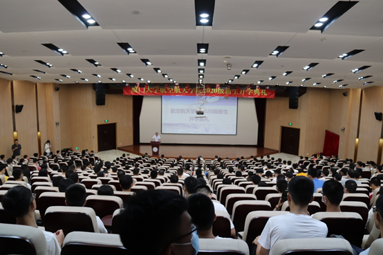 9月13日上午九时,厦门大学航空航天学院2020级新生开学典礼在德旺图书馆举行,出席本次典礼的有厦门大学航空航天学院党委书记王康平、常务副院长尤延铖、副院长侯亮、党委副书记林蔚、机电工程系副主任祝青园、动力工程系副主任王希、仪器与电气系副主任郑高峰、一班班主任陈桂鹏、二班班主任黄澜涛、三班班主任曾涛、六班班主任马骥、八班班主任闫成、九班班主任金华、辅导员水永生、刘群以及全体2020级本科生新生和研究生新生,会议由学院党委副书记张晴主持。