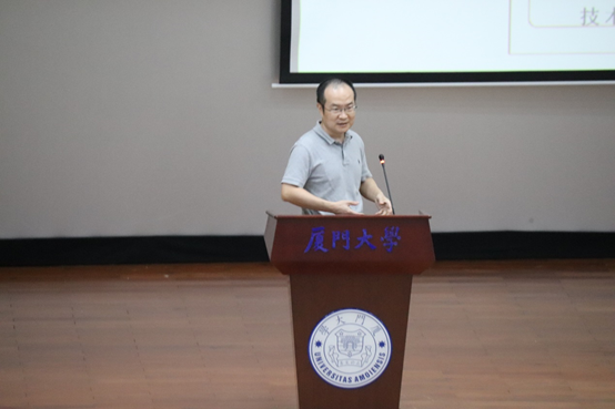 航空航天学院常务副院长尤延铖为新生介绍学院概况。尤延铖教授讲到,“2015年4月6日,学校整合相关学科资源,由原航空系、机电工程系和自动化系成建制合并,组建成立厦门大学航空航天学院,并由中国工程院院士、航空发动机专家尹泽勇出任院长,下设有飞行器动力工程、飞行器设计与工程、机械设计制造及其自动化、自动化、测控技术与仪器、电气工程及其自动化6个本科专业。”尤老师提到:“学院发展坚持三大原则:聚焦下一代的航空航天技术,学科交叉融合,紧跟国际前沿。”虽然学院成立时间较晚,但在短短5年内就已经取得了显著成就:嘉庚一号的成功发射与回收,南强一号实现首飞,我院肖望强团队为国家航天事业提供技术支持。尤老师强调:“要取得这些突出成就,需要脚踏实地,砥砺前行。”他希望各位新生可以做到“思想引航、实践适航、就业起航”,同时在保证学习的情况下,踊跃参加各种活动,拥有一个多姿多彩的大学生活。