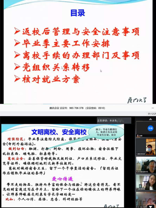 住宿安全教育是学生日常行为管理中极为关键的环节,安全卫生是每个同学的基本需求,毕业生也不容忽视。随着毕业季的到来,结合爱国卫生月活动,学院学工组在返校毕业生中开展了宿舍安全及文明离校相关教育,进一步巩固毕业生的安全意识和卫生意识。倡导毕业班同学们作为学长学姐,为学弟学妹们做好表率,为文明有序离校做好准备,给母校和母院留下靓丽背影。
