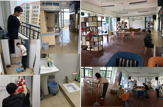 疫情暴发至今已四月有余,学生宿舍长时间无人居住,灰尘累累,可能还会因潮湿而发霉。为应对这一情况,学院学工组在返校学生中组织开展集体大扫除活动,还宿舍一个干净、美丽的面貌。同学们普遍认为,疫情期间宿舍的干净卫生也是避免疾病传播的基本保证,大家纷纷积极响应。在打扫好自己宿舍的同时,同学们还自发组织对学院映雪五“一站式”综合育人平台进行打扫和清洁,为平台的开放做好准备。通过劳动实践,同学们深刻体会到保持良好卫生习惯的重要性,活动取得了良好的育人效果。
