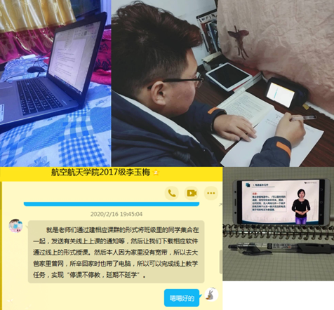 面对当前疫情防控、学生不能如期返校的情况,航空航天学院先人一步,充分展现以学生为本的育人意识,在2月初率先组织教师党员建设“防疫领航”系列线上课程平台,组织学生停课不停学,为新学期预热助跑。接到学校2020年春季学期延期开学通知后,学院疫情防控工作领导小组紧跟学校部署,多次召开会议,第一时间组织动员并安排相关教学工作,提前规划、高效推进、扎实落实,确保教师校内不停课,学生校外不停学。