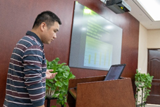吴德志主要从中心基本情况、创新平台基本条件、技术先进性、经济社会效益、投资情况五个方面进行了中心的总体情况汇报。王凌云对非硅微纳系统制造技术研究所的典型产品和成果,如精密点胶设备、高精度压力传感器、柔性可穿戴传感器等进行了介绍。自动化系仲训昱副教授和机电工程系机器视觉与光学测量实验室张建城博士生分别对自主开发的自主导航智能移动机器人和面向平板显示的智能视觉检测系统的开发和产业化情况做了详细汇报。