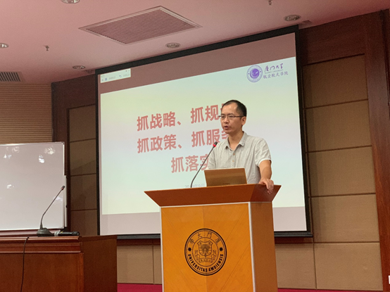 副院长卿新林主要针对学院的师资队伍建设,从引进与培育高层次人才、建立多层次科研创新团队、优化工程技术队伍人员配置、完善教师职务聘任机制、提升师资队伍业务水平等五个方面,介绍了学院目前的师资情况以及未来的发展规划。他表示,学院正在进行整体规划,要进一步明确主体责任,并设立包括高层次人才引荐奖励、科研创新团队负责人、学生竞赛指导工作量等工作制度来提升学院整体的师资队伍水平。