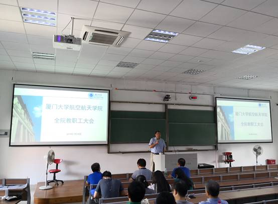 2019年7月19日上午,我院教职工大会于学武楼A401举行。学院党委书记王康平、常务副院长尤延铖、副院长侯亮、卿新林、党委副书记郑镇锋、洪春生出席会议,会议由洪春生主持。