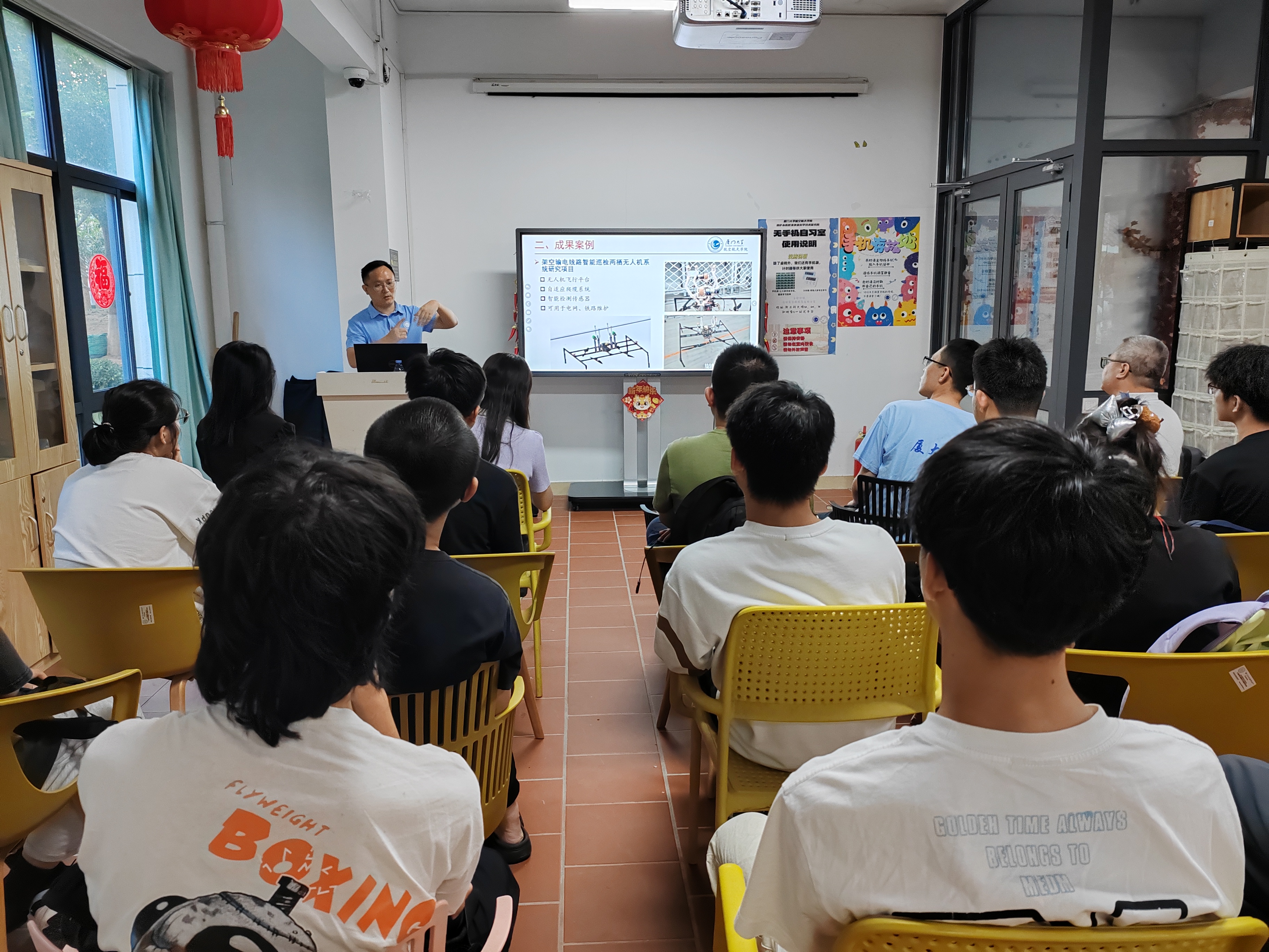 随后,殷春平特别分享了历届优秀学生参与航空航天科研项目的成功案例,涉及智能无人机系统的设计和实际应用,让同学们对科研项目的实际操作和创新成果有了直观的了解。他展示了学生代表在课题中所取得的成绩,从项目立项、方案设计到成果实现的全过程,生动诠释了科学探索的挑战与收获。通过案例分享,同学们能够清晰地感受到科研创新的魅力与价值,更激发了大家对探索未知领域的热情。