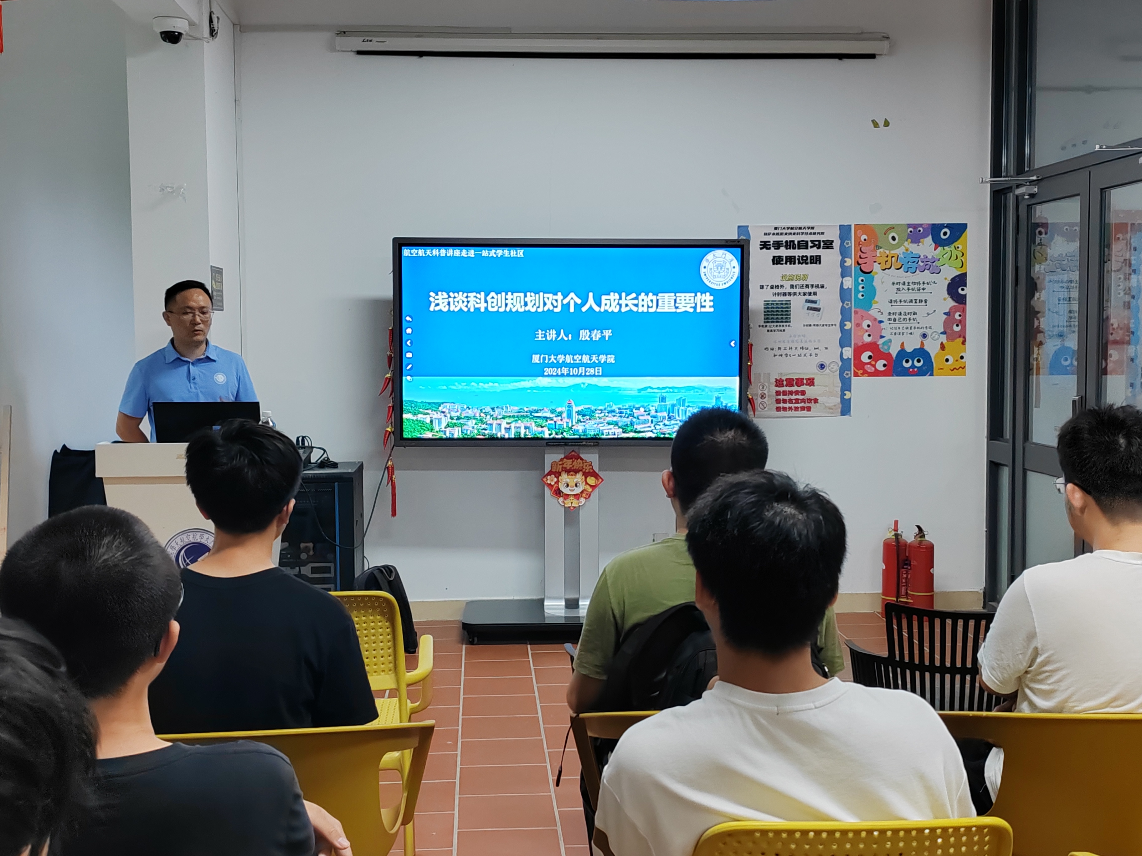 10月28日下午,航空航天学院在映雪五“一站式”学生社区举行题为《浅谈科创规划对个人成长的重要性》的科普讲座。本次讲座由学院高级工程师殷春平担任主讲,分享关于科技创新与个人成长历程。学院“一站式”学生社区兼职辅导员陈燕君、刘志荣、庄静怡及学生代表参加活动。