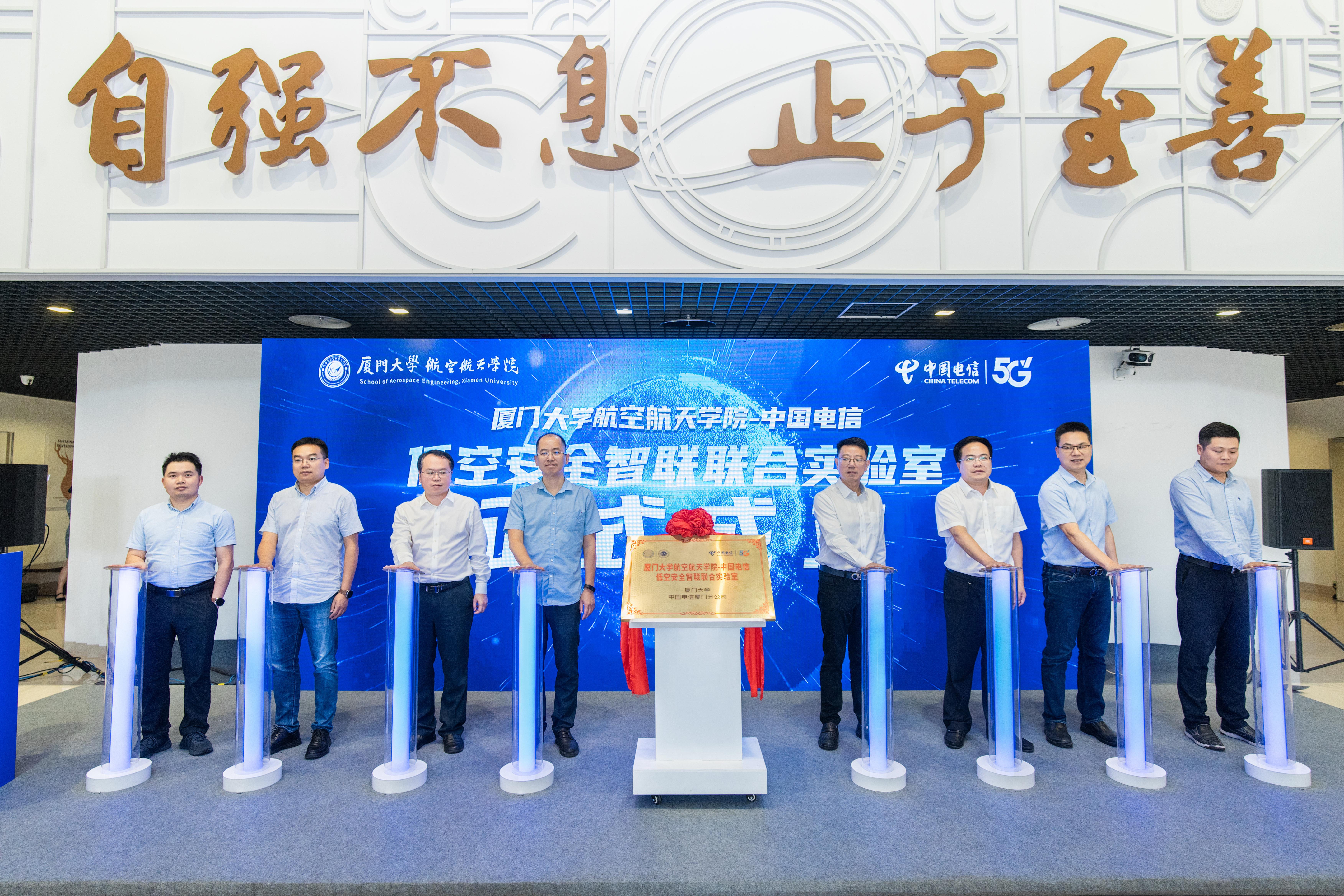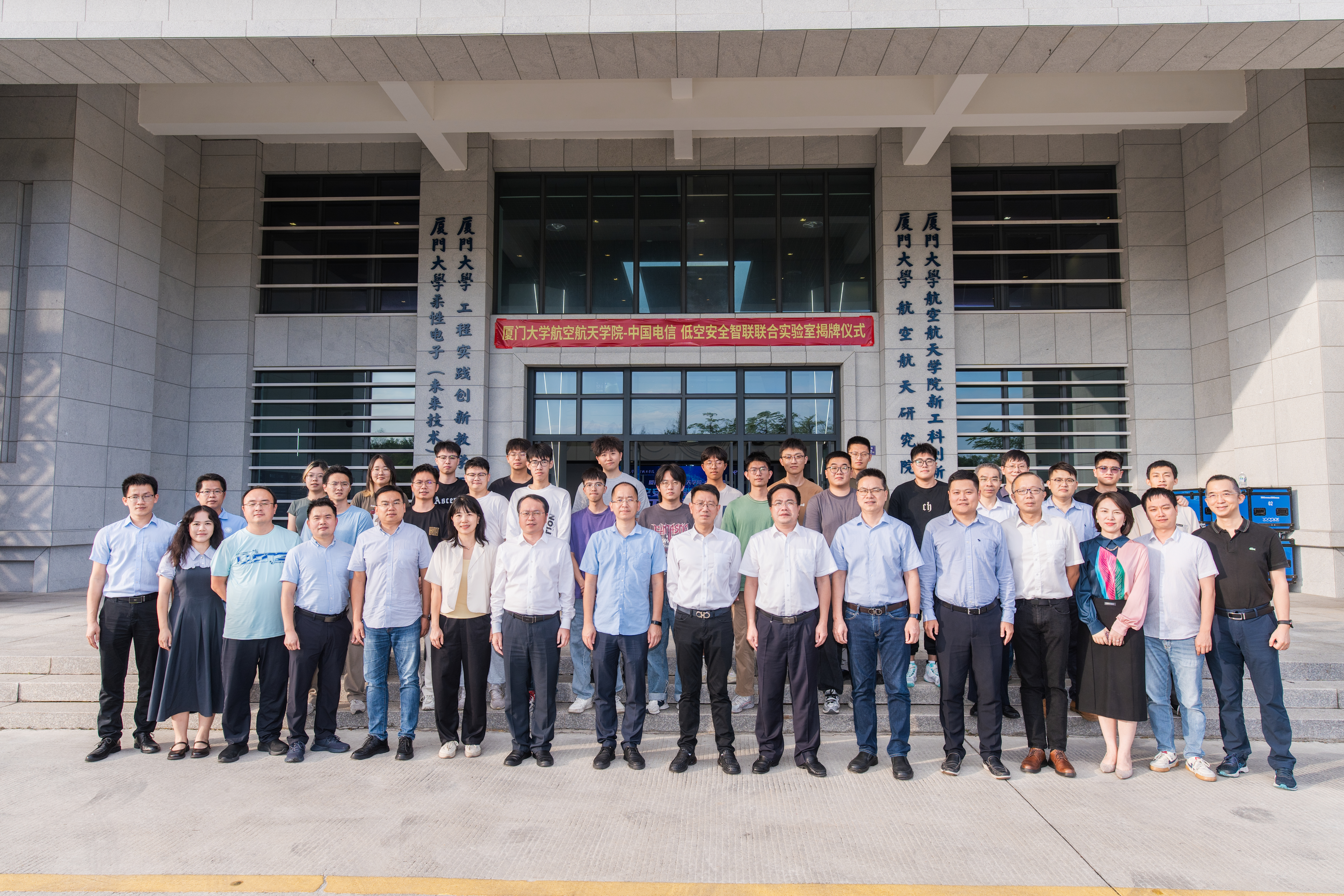 10月28日,中国电信股份有限公司厦门分公司(以下简称“厦门电信”)与我院携手共建的“低空安全智联联合实验室”揭牌仪式在厦门大学新工科研发大楼隆重举行。厦门电信党委书记、总经理曾群慧,副总经理庄祖杰、庄文华,中国电信无人科技有限公司运营总监潘鑫华,厦门大学党委常委、副校长尤延铖,校发展规划办公室副主任洪文兴,学院副院长曾念寅,以及厦门电信相关单位领导、专家和学校师生代表出席了本次活动。揭牌仪式由学院副院长黄玥、厦门电信政企信息服务事业群副总经理陈琨共同主持。