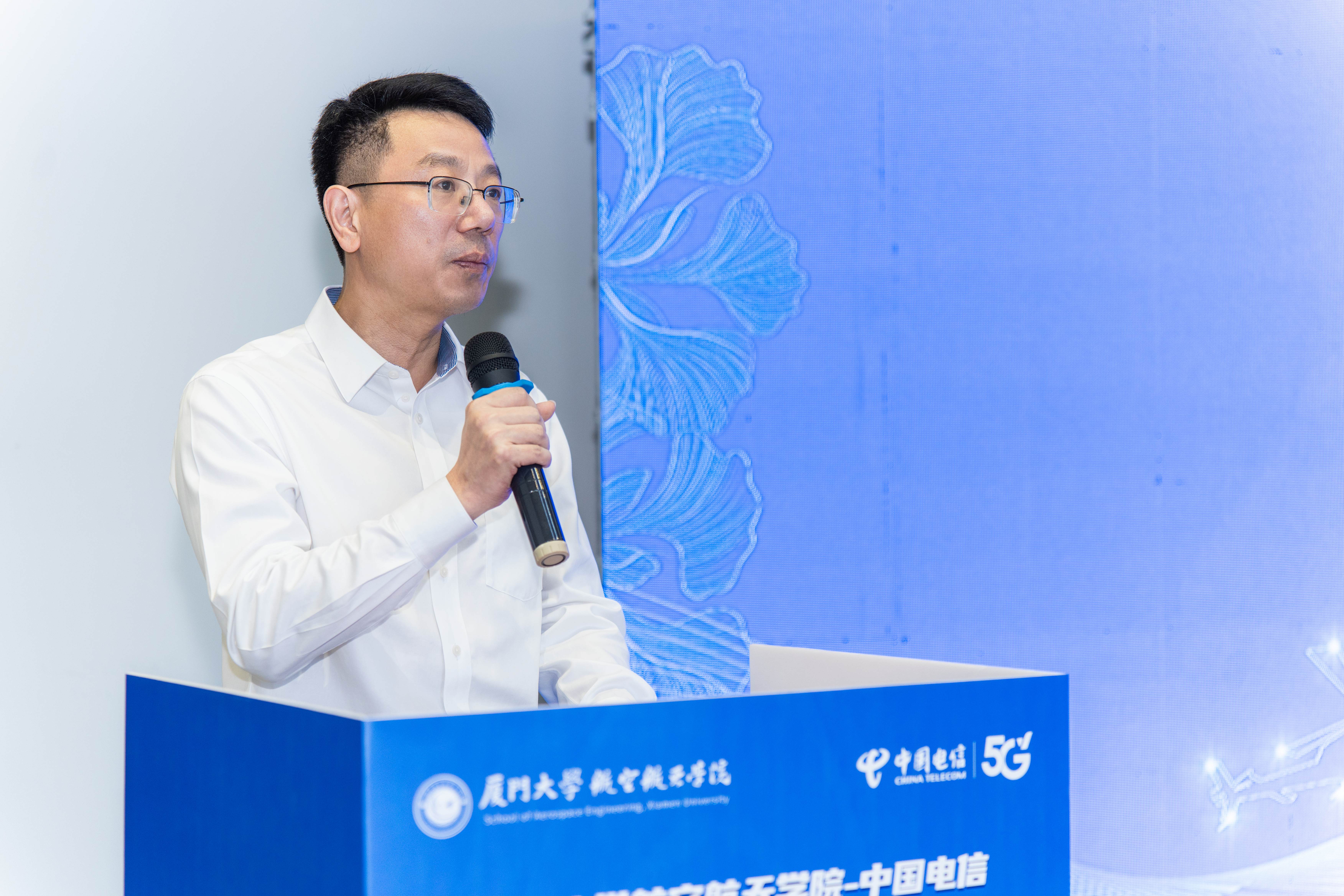 尤延铖首先致欢迎词。他表示,联合实验室将充分发挥厦门大学在低空经济领域的多学科交叉融合研究优势和中国电信的建设运营经验,携手构建“智慧低空”综合服务体系。通过产学研深度合作,打造复合型创新人才队伍,培育“人工智能+无人机”的特色研究方向,并通过优化无人机智能巡检算法设计、模型调优和边端部署,保障无人机敏感数据的安全性。