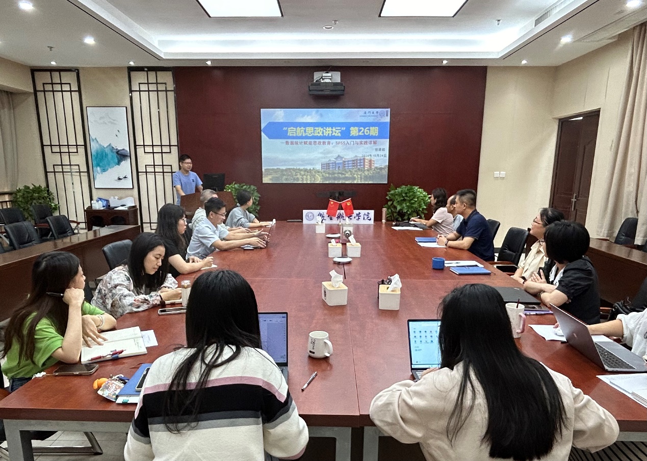 为助力学生工作由经验主导模式向数据驱动的育人模式转变,10月24日,航空航天学院组织开展第26期“启航思政讲坛”,围绕数据统计如何赋能思政教育展开学习与实践。院团委副书记倪建超结合实践经验做《数据统计赋能思政教育》主题分享,院党委副书记林蔚、王寒,院办全体党政管理人员、辅导员参加本次活动。