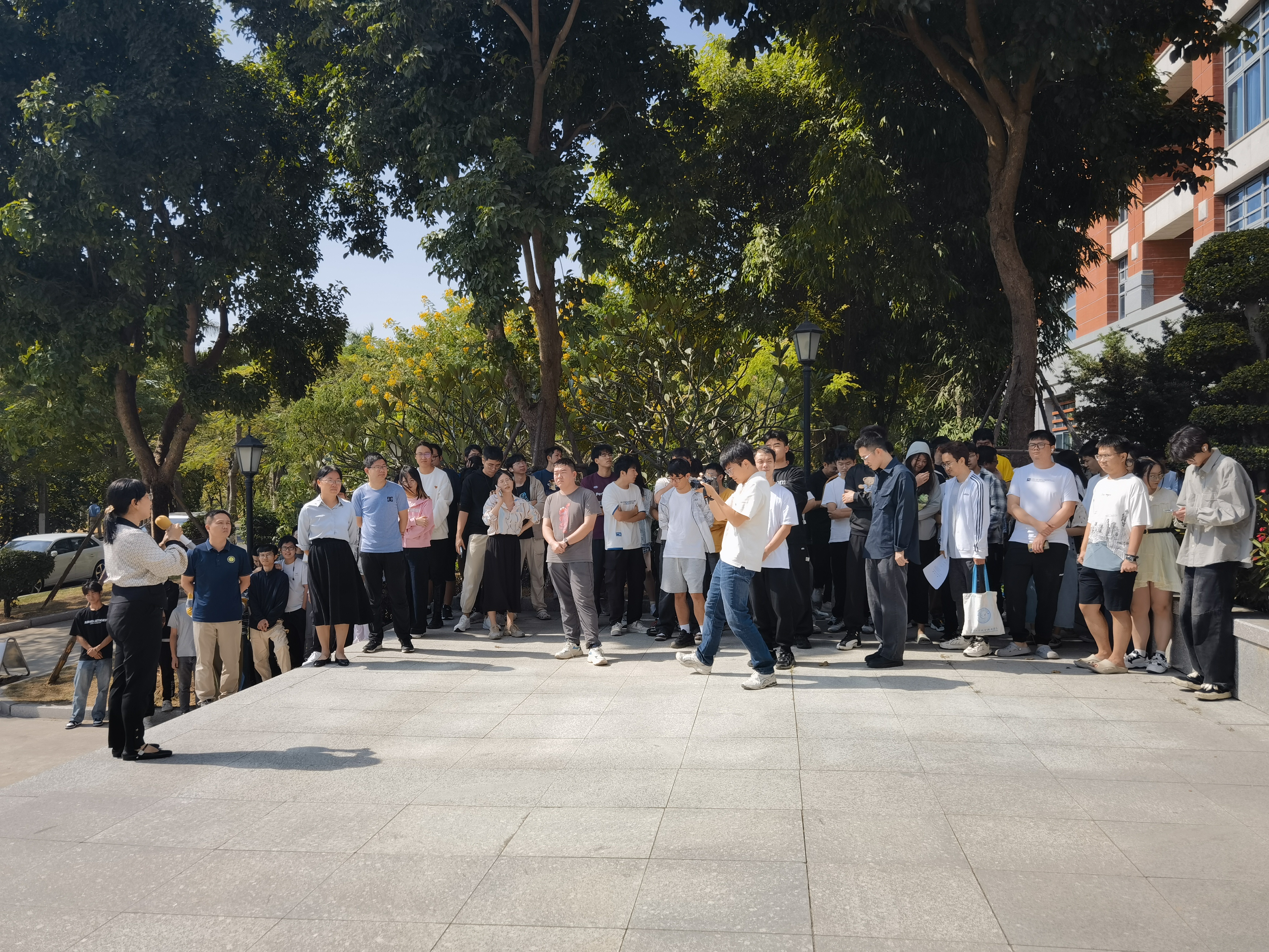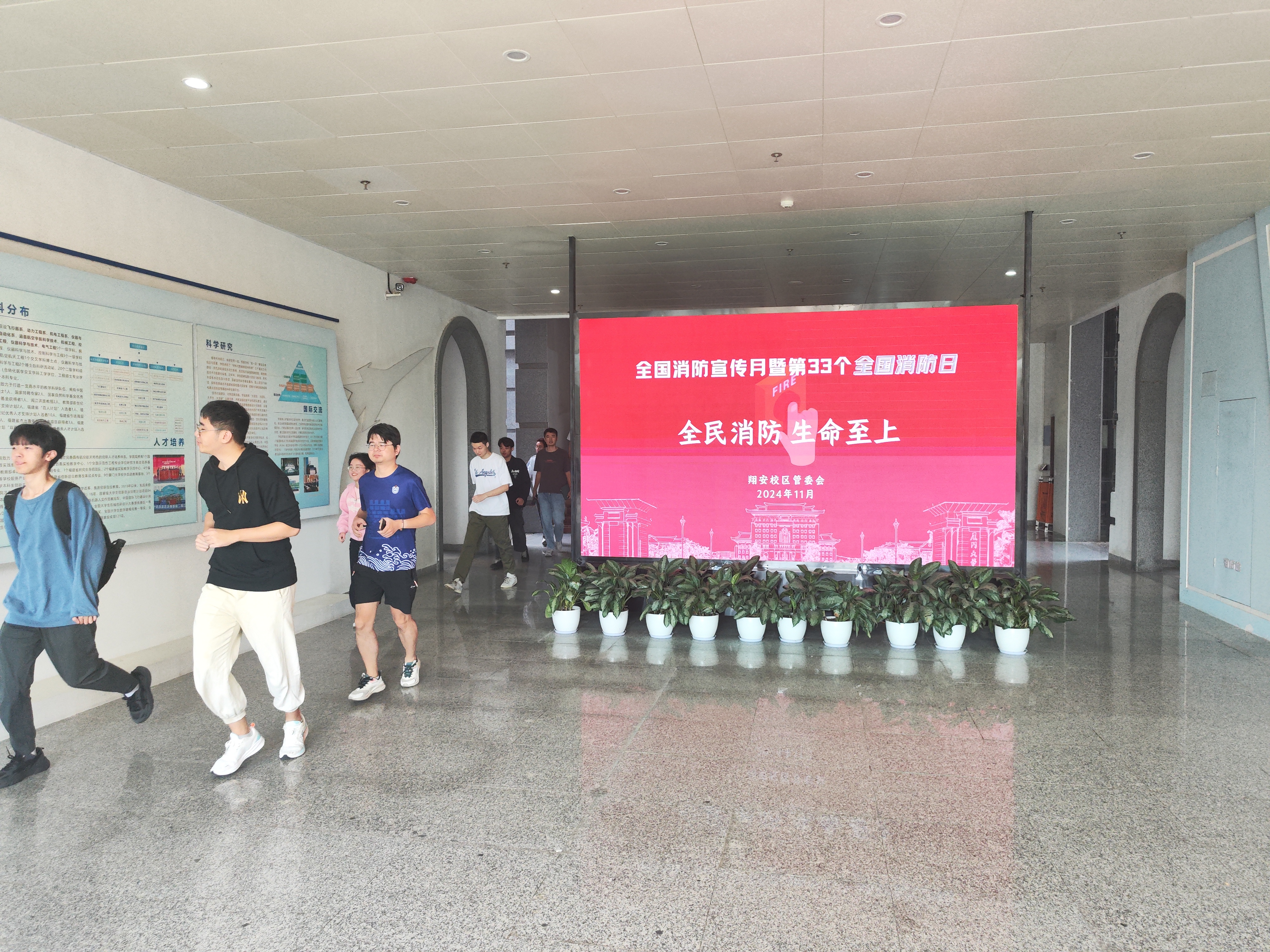 讲座结束后,消防演练正式开始,警报声响起,消防中控确认火情,并立即启动消防设施,师生在工作人员指引下,快步前进、捂住口鼻,按照预定方案依次有序快速撤离到集合地点,整个疏散过程紧张有序。