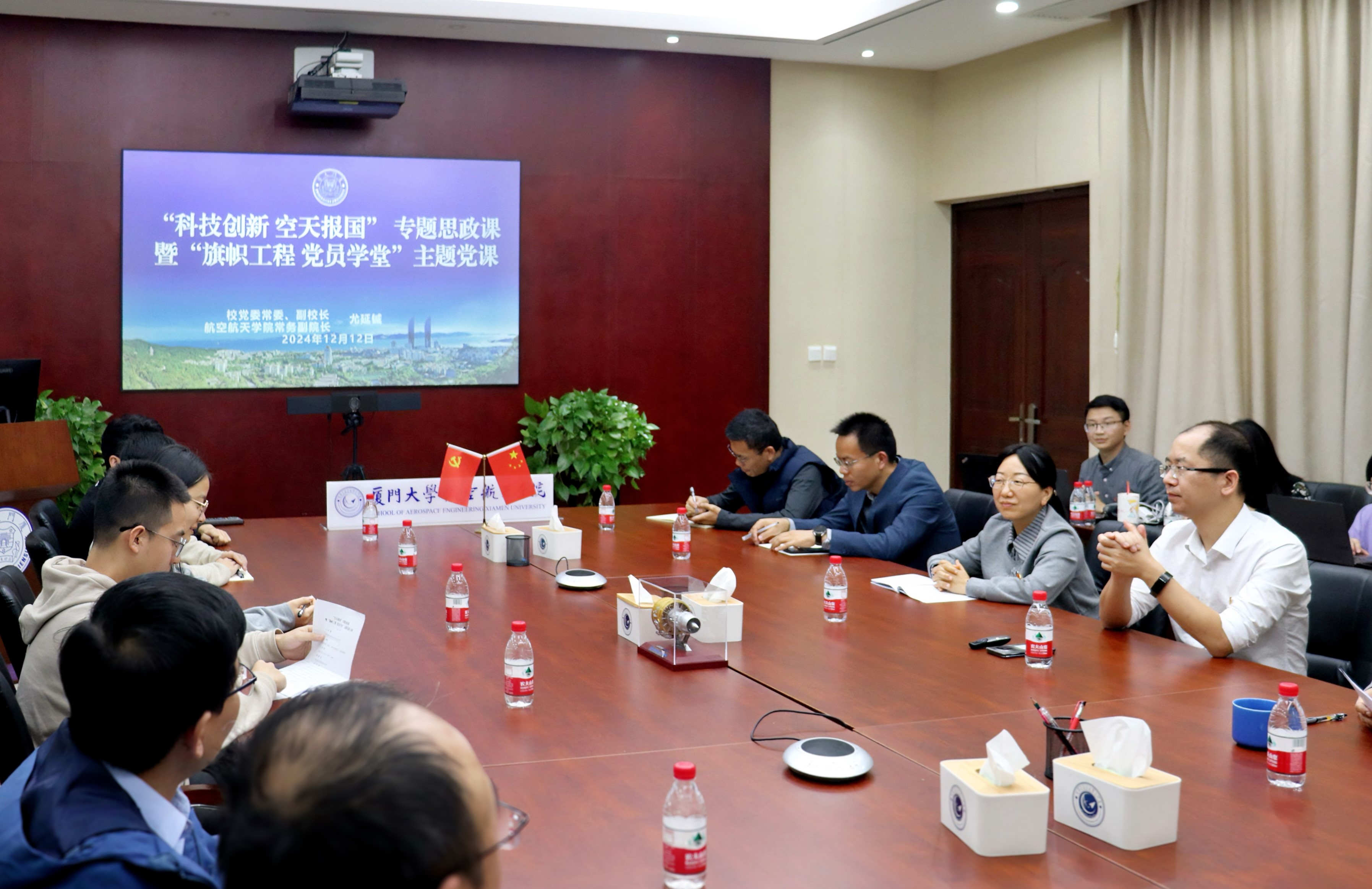为深入学习贯彻全国教育大会精神,贯彻落实习近平总书记关于科技创新的重要论述,激发青年师生参与科技创新的热情,提振青年师生勇攀科技高峰的信心,12月12日下午,“科技创新 空天报国”专题思政课暨“旗帜工程 党员学堂”主题党课在航空航天学院举行,校党委常委、副校长,航空航天学院常务副院长尤延铖围绕“科技创新与高校科技成果转化”作主题报告,与航院青年师生就科技创新如何更好地契合国家战略以及落地转化进行深入交流研讨。航空航天学院党委书记廖志丹参加思政课交流,航空航天学院党委副书记林蔚主持思政课。