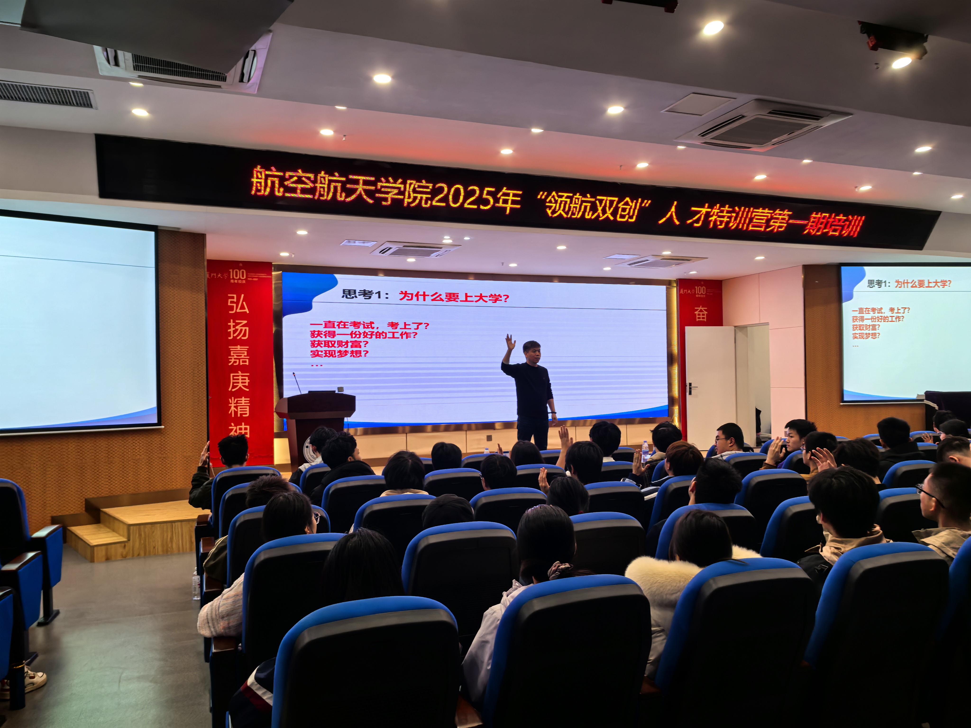 3月8日下午,航空航天学院2025年“领航双创”人才特训营开营仪式暨开营第一课在学院547报告厅举行。学院党委副书记林蔚,工程管理中心主任、高级工程师刘万山,学生科创中心工作组成员及全体营员参加活动,辅导员刘群主持活动。